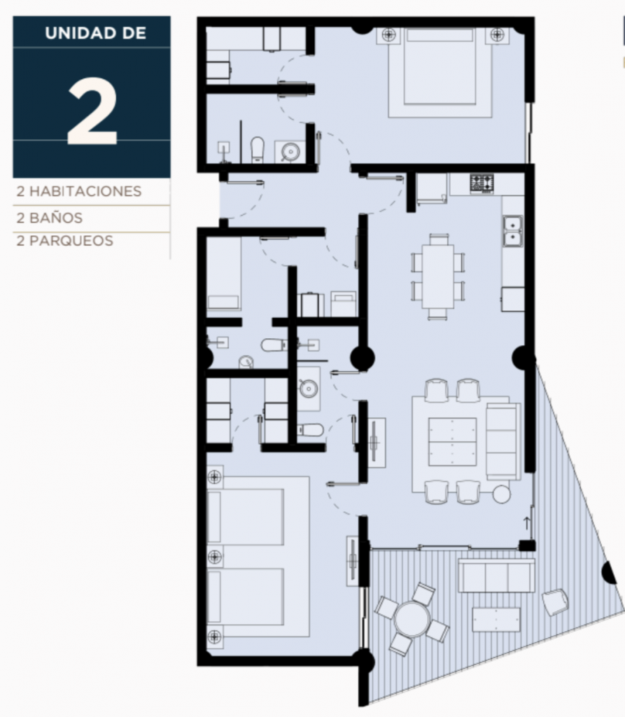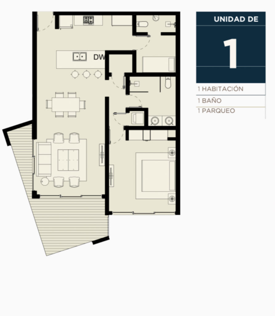 El proyecto cuenta con apartamentos de 1 y 2 habitaciones distribuidos de la siguiente forma