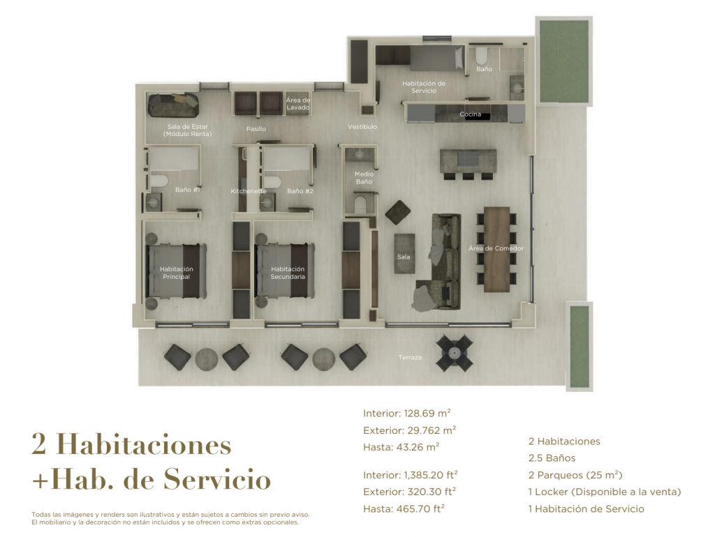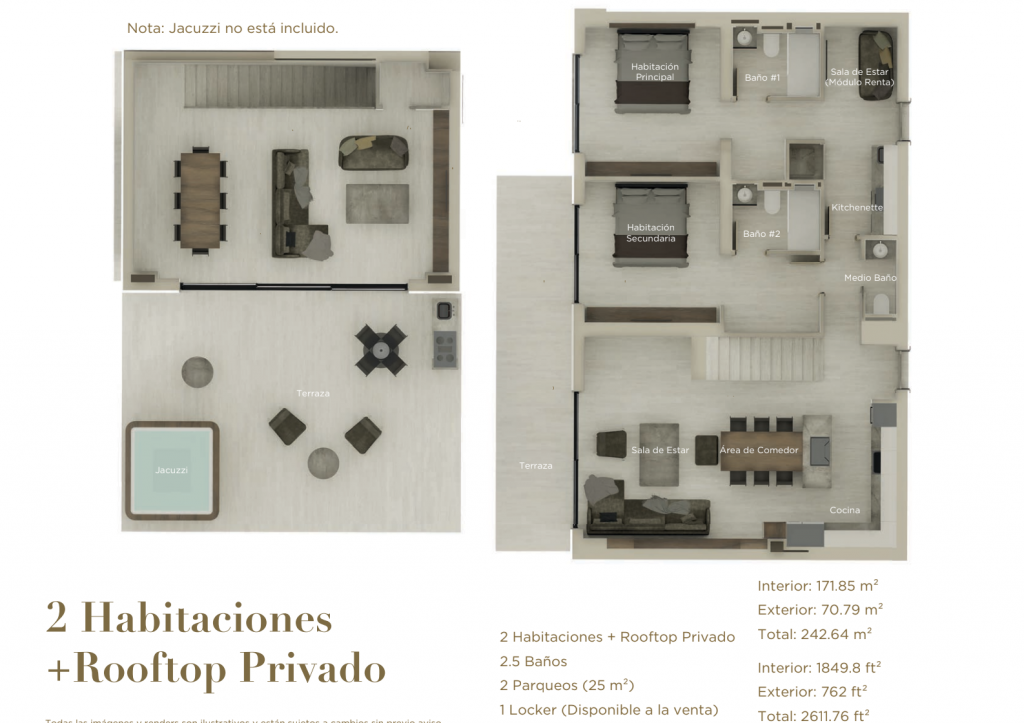 La cuidadosa progresión de comodidades y servicios comienza en el vestíbulo y abarca diferentes niveles de experiencias tanto en interiores como en exteriores para el bienestar y el entretenimiento.